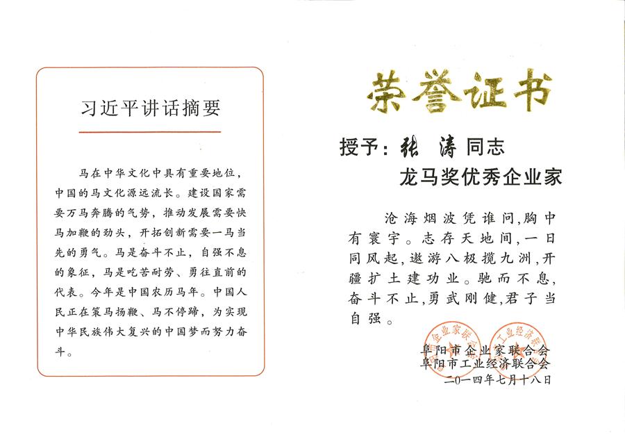 張濤同志獲龍馬獎(jiǎng)優(yōu)秀企業(yè)家
