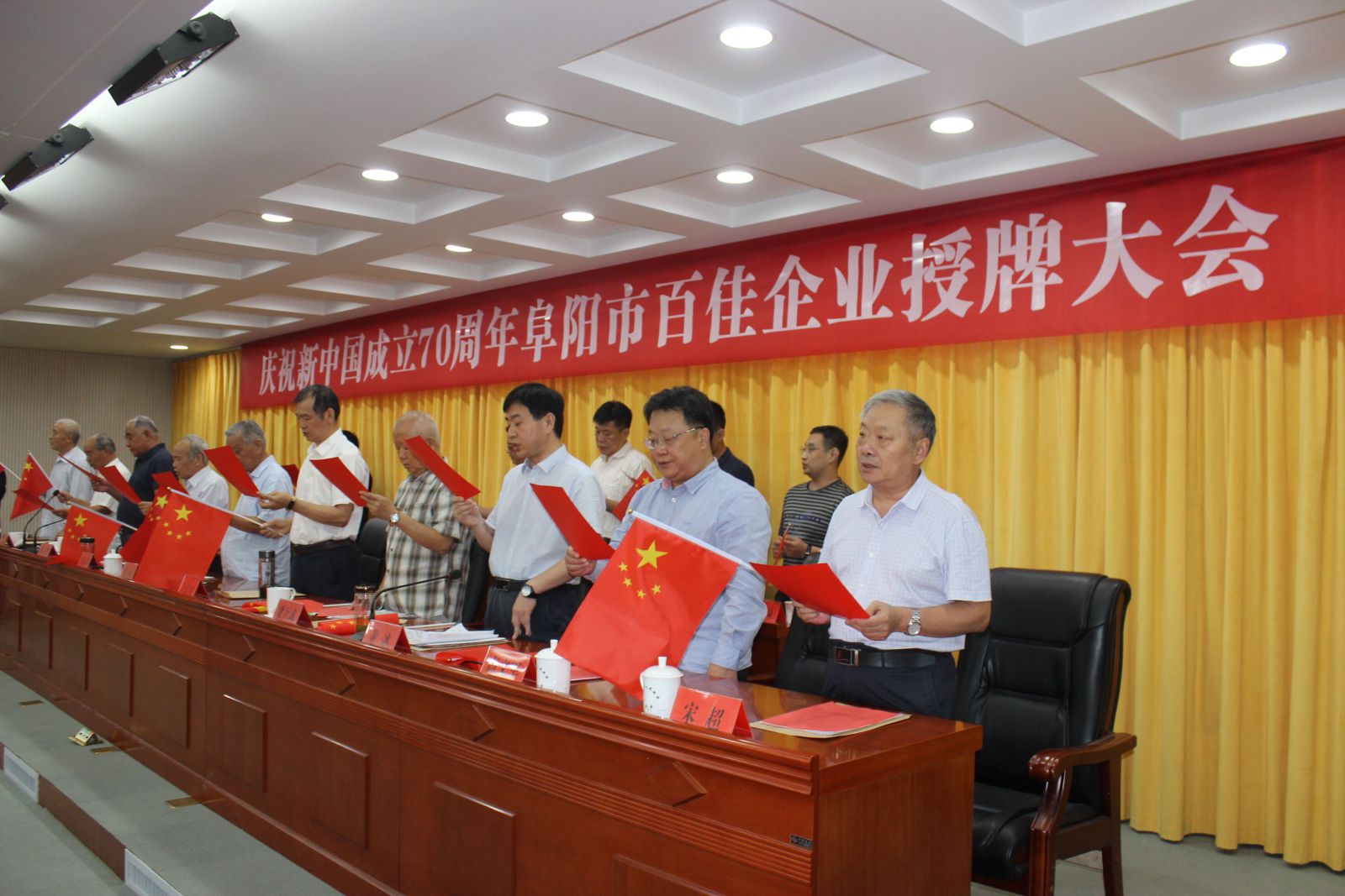 9月27日上午,在“慶祝新中國(guó)成立70周年阜陽(yáng)市百佳企業(yè)授牌大會(huì)”,集團(tuán)公司榮獲由阜陽(yáng)市企業(yè)家聯(lián)合會(huì)、阜陽(yáng)市工業(yè)經(jīng)濟(jì)聯(lián)合會(huì)、阜陽(yáng)市循環(huán)經(jīng)濟(jì)研究會(huì)頒發(fā)的“壯麗70年 奮斗新時(shí)代 創(chuàng)業(yè)標(biāo)兵企業(yè)”榮譽(yù)稱號(hào)。公司董事長(zhǎng)張濤先生代表公司出席了此次大會(huì)。